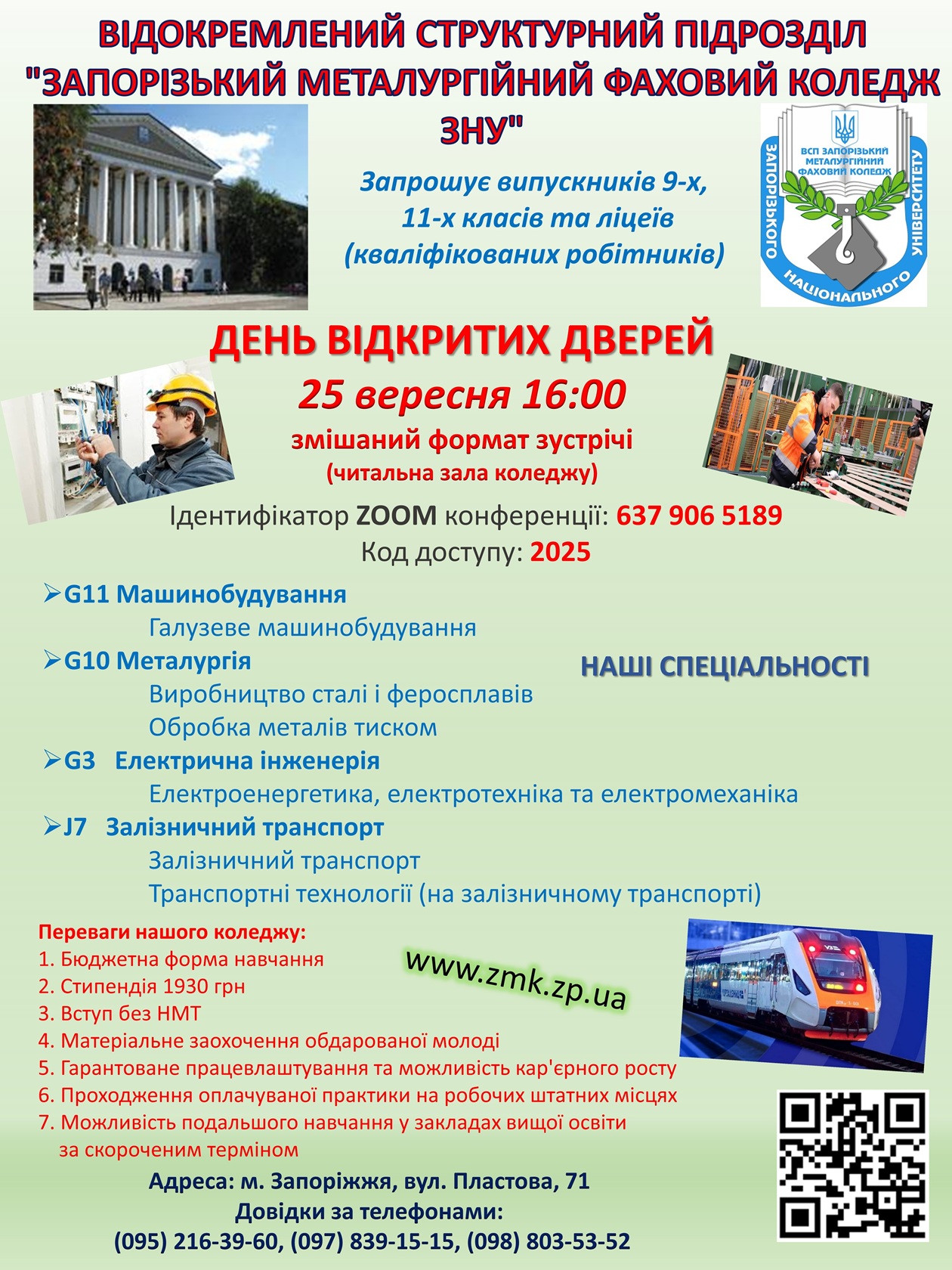 День відкритий дверей. Запорізький металургійний фаховий коледж