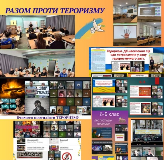 Проведено виховні години, обговорення відеороликів, зустрічі з ювенальною поліцією. Такі заходи формують у дітей почуття відповідальності, розуміння небезпеки тероризму та важливості збереження миру.