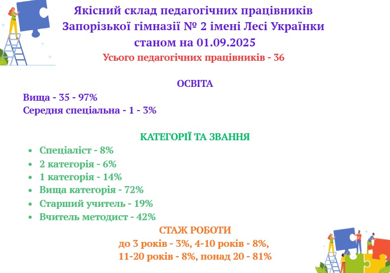 Ліцензований обсяг 1176 учнів (30 класів) та фактична кількість осіб, які навчаються в ЗГ № 2 - 502 учня (17 класів).